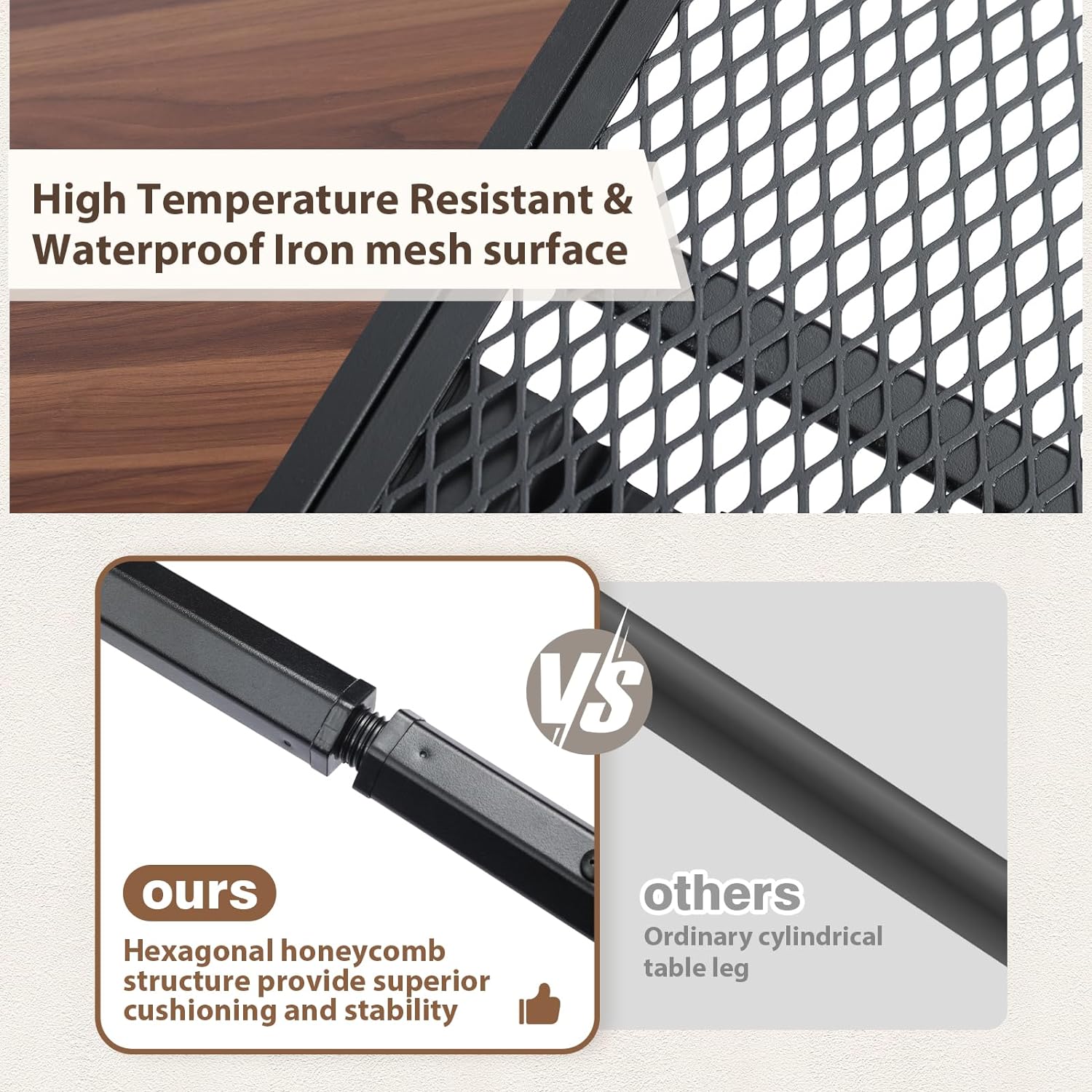 - Robust and Sturdy: The special hexagonal tube design make it more stable than other ordinary iron tubes. The triangular support structure of each side also improve the stability of the table. These make it able to support up to 120 pounds.