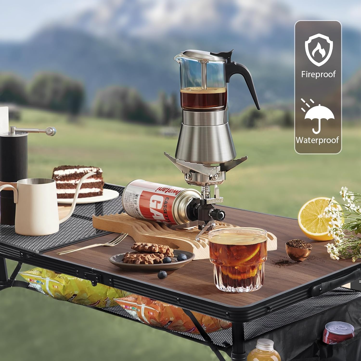 - More Capacity: Come with a removable mesh layer and side-pocket. Simply attach mesh bag and pocket to the legs. This feature allows the table to hold as many items as you want. No more spilling with the cup holders.