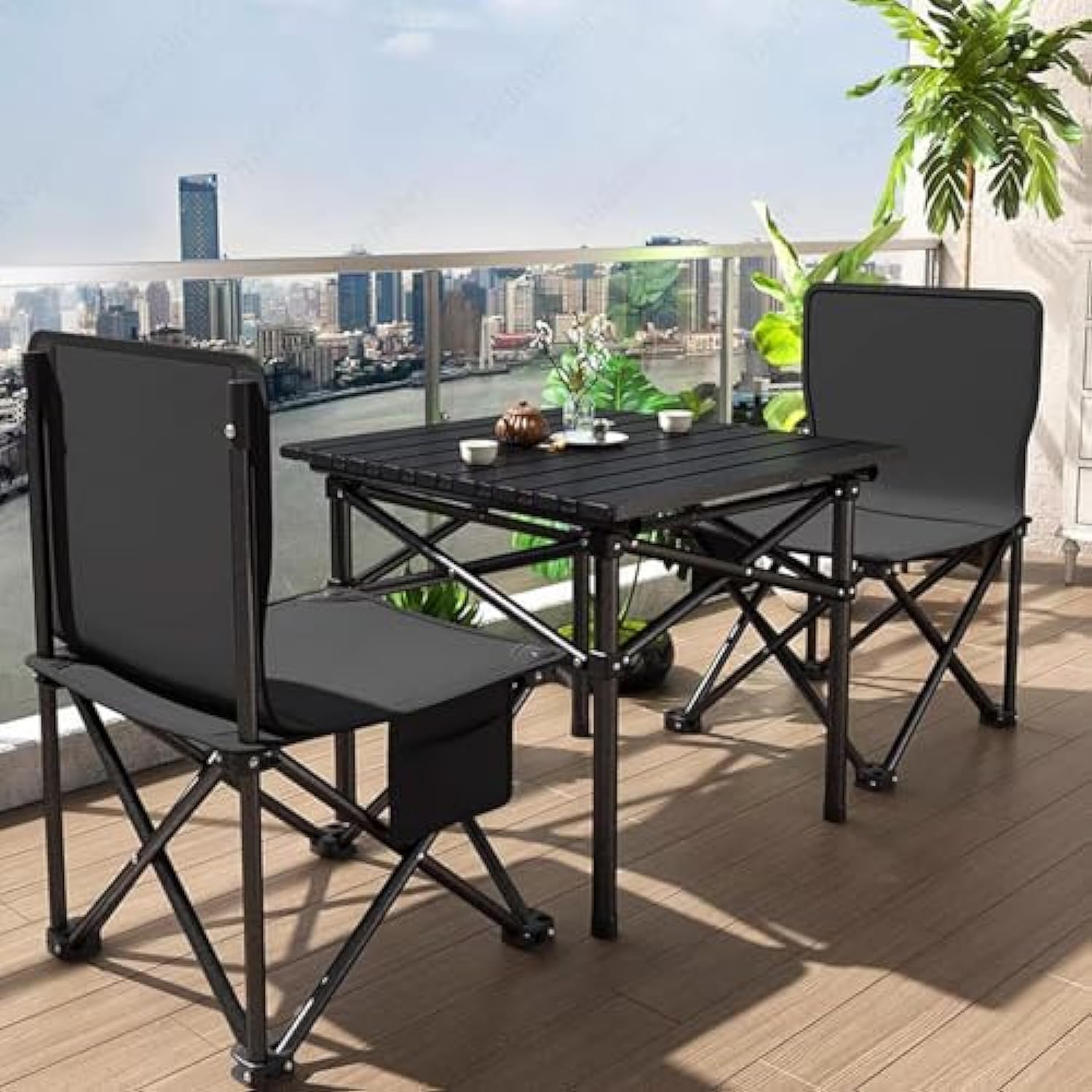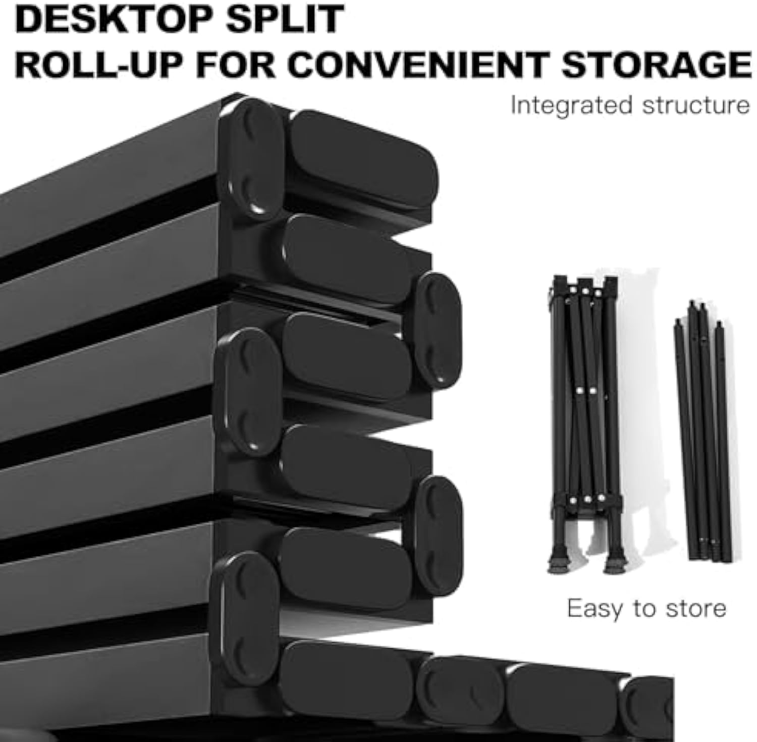 - [Roll Up Camping Table]-With the split type design for the board and bracket, the portable camp side table top can be rolled up and the steel frame can be folded,so it is easy and safe to install or fold at anytime to help you save much time.It is so easy that a kid can do it!