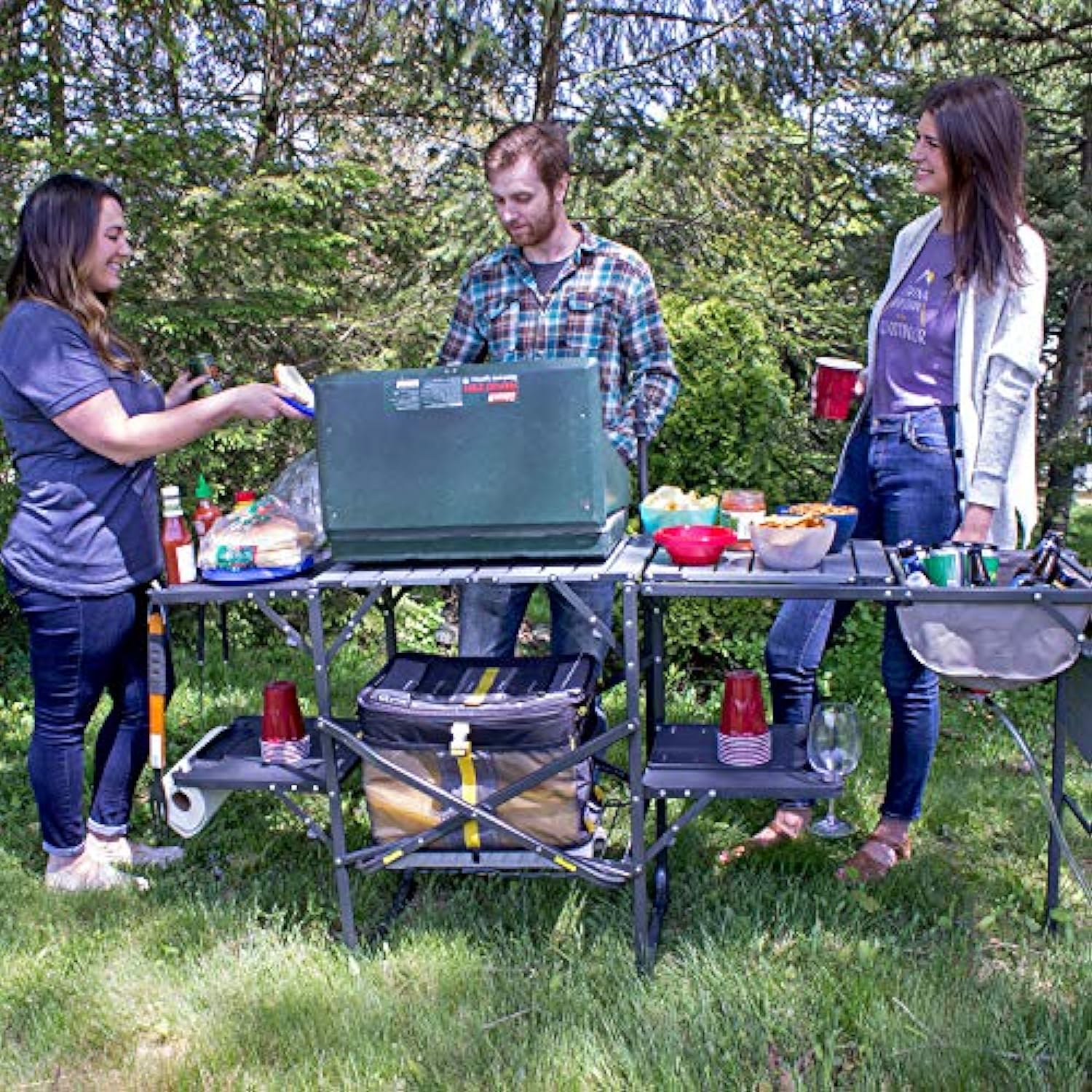 - READY TO COOK. Safely use a camp stove on the tabletop thanks to a strong, heat resistant aluminum design. Popular uses include tailgating prep station, campsite kitchen, picnic table, and cleaning site — this table is perfect for any multi-use occasion.